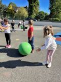 Les élèves participent à une initiation sur les Jeux innovants avec l’intervention de Nicolas Bazin intervenant Ugsel. C’est l’occasion de découvrir le scratchball, le poulball, le kinball… pour eux et de travailler en équipe, de travailler la coordination, l’équilibre, l’entraide.